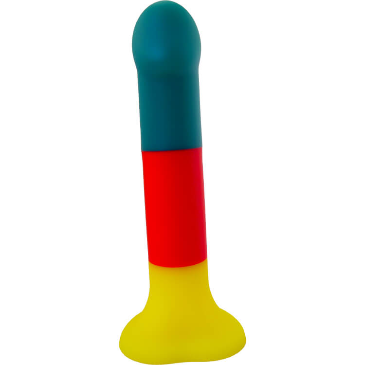 Food-grade silicone colorful dildos massager, Three-color mix of green, red, and yellow for a playful touch.